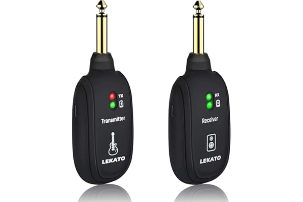 LEKATO Wireless Guitar System Built-in Rechargeable 4 Channels Wireless Guitar Transmitter Receiver for Electric Guitar Bass Violin