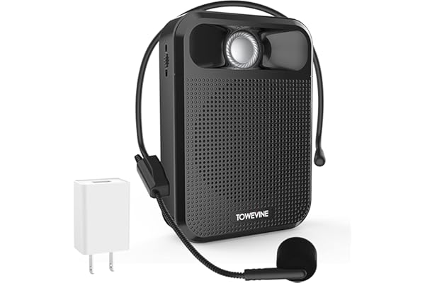 Towevine Rechargeable Microphone for Teachers, Speaker with Headset and Waistband for Classroom, Singing, Coach, Training, Presentation, Tour Guide