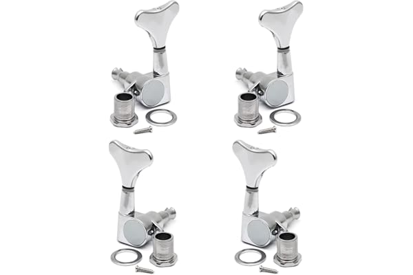 FLEOR Chrome 2+2 Sealed Bass Tuners Tuning Pegs Keys 2R2L Machine Heads for 4 String Bass Guitar Replacement