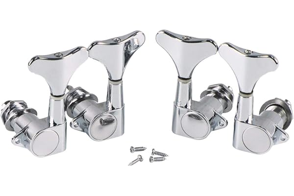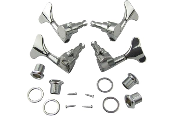 FLEOR Chrome 2+2 Sealed Bass Tuners Tuning Pegs Keys 2R2L Machine Heads for 4 String Bass Guitar Replacement