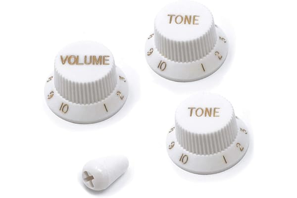 Vintage Forge White Guitar Control Knobs (1 Volume, 2 Tone, 1 Switch Tip) for Fender Strat Style Electric Guitars Fits USA (Imperial) Split Shaft Pots STKUS-WHT
