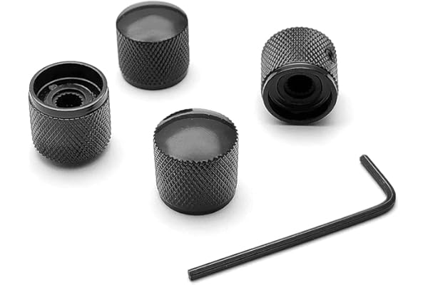 SAPHUE 4 Pcs Metal Volume Tone Dome Tone Guitar Speed Control Knobs with Allen Keys Screws Set for Fender Strat Telecaster Gibson Les Paul Electric Guitar or Bass(Black)