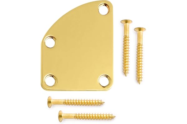 Metallor Electric Guitar Neck Plate Curved Cutaway Semi Round Neck Joint Back Mounting Plate for Stratocaster Telecaster Style Electric Guitar Bass Parts Replacement 4 Holes with Screws Gold.