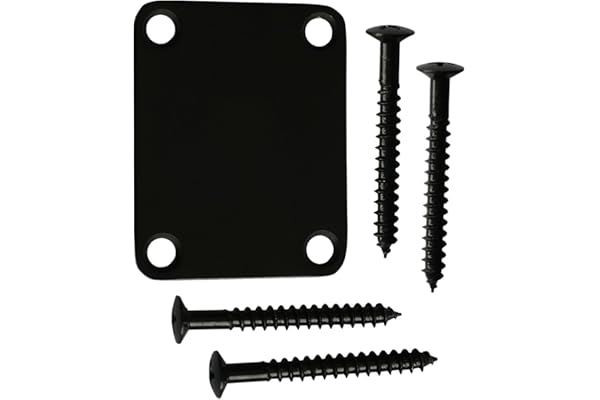 Metallor Guitar Neck Plate Standard 4 Holes with Screws 64 x 51mm Compatible with Strat Tele Style Electric Guitar Jazz Bass Parts Replacement Pack of 1Set Black.