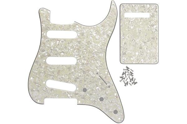 IKN 4Ply Aged Pearl Strat Pickguard Backplate Set for 3 Single Coil Pickups-11 Hole