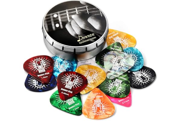 Donner Celluloid Guitar Picks 16 Pack with Tin Box includes Thin