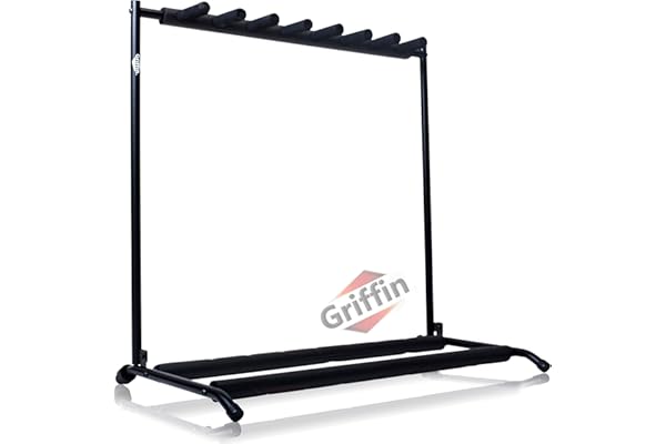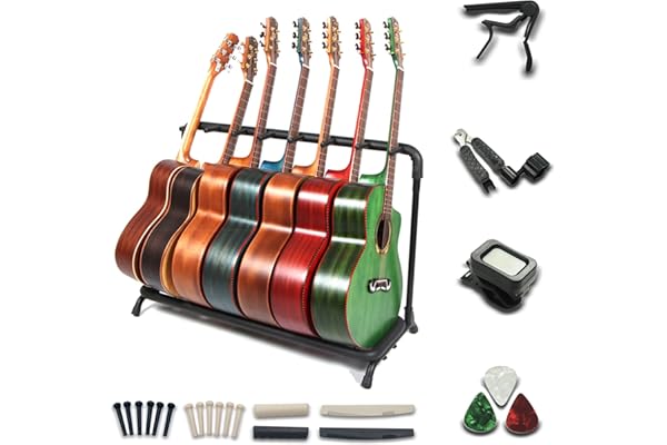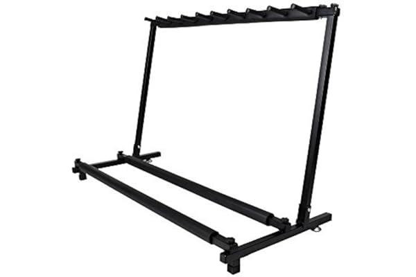 Foldable Universal Display Rack - Portable Black Guitar Holder With No Slip Rubber Padding for Acoustic, Electric, Bass Guitar Bag Case(7 Spaces)