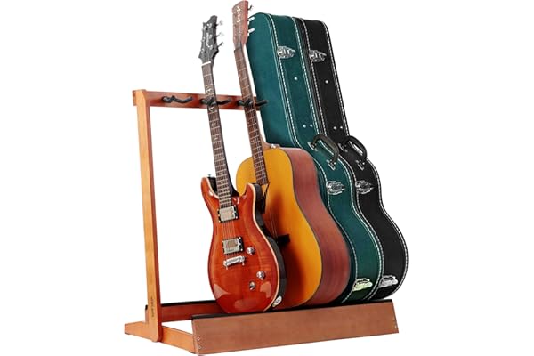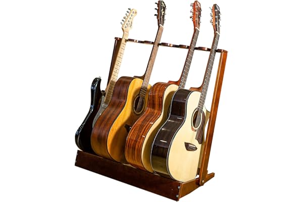Hardwood Folding Guitar Floor Rack, Multi Guitar Display Holder, for 6 Electric or Bass Guitars, or 3 Acoustic Guitars for Home, Studio, Stage