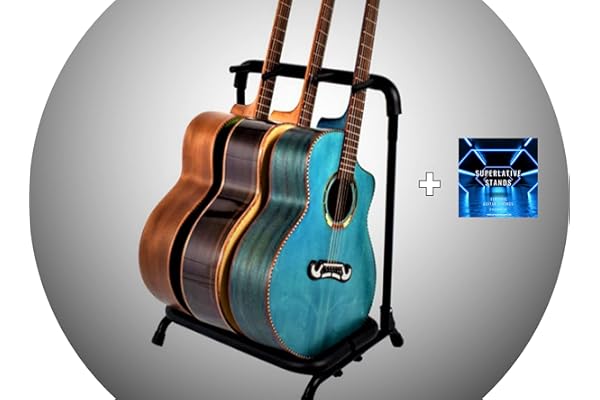 Superlative Stands Multiple Guitar Stand Rack; Foldable Display Holder for 3 Guitars; Electric Bass Stage Display Holds Up to Three Black