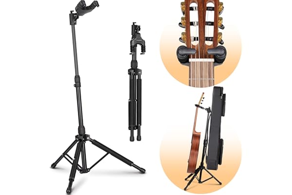 with.12 Inch Soft Leather Ddge, Safe Non-Slip Portable Stringed Instrument Stand, Used for Acoustic, Classical, Electric Guitar, Bass