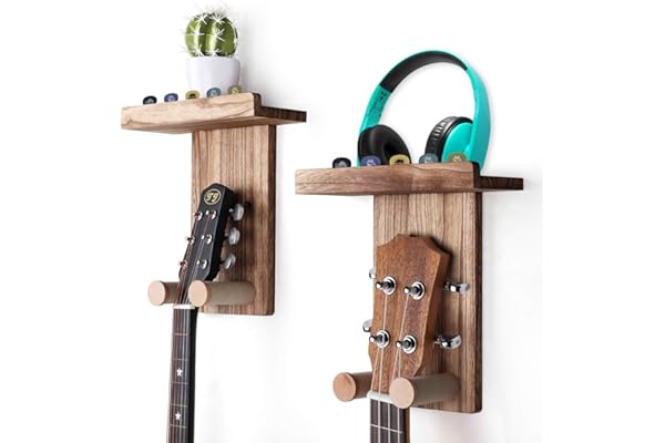 2 Pack Guitar Wall Hanger Holder Guitar Hanger Shelf with Pick Holder Wood Guitar Rack for Acoustic or Electric Guitar,Ukulele,Bass,Mandolin Brown,[Patented]