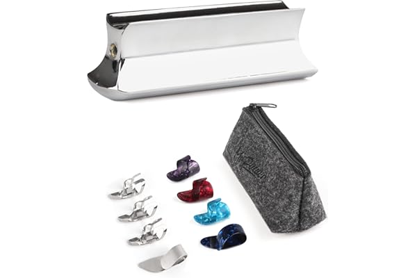 Set of 1 Glass Slide, 1 Steel Slide and 1 Brass Guitar Slide, Bonus 6 Pcs Guitar Picks, and 4 Finger Picks