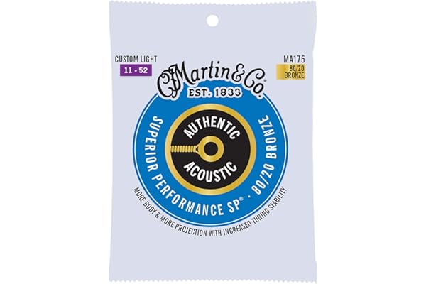 Acoustic Guitar Strings - 80/20 Bronze - For 6 String Guitar - Deep, Bright, Projecting Tone - EJ11 - Light, 12-53