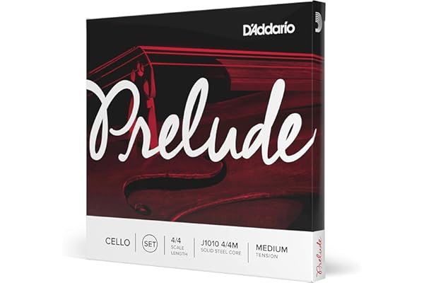 D’Addario J1010 Prelude Cello String Set, 4/4 Scale Medium Tension (1 Set) –Solid Steel Core, Warm Tone, Economical, Durable