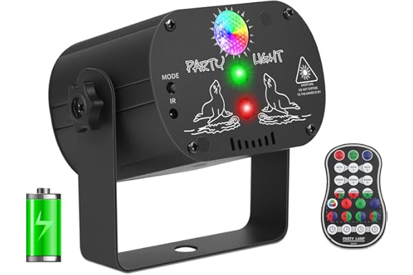 DJ Disco Lights for Party Strobe Lights Battery Powered, Sound Activated Laser Light Show, Stage Light with Remote Control, Best for Christmas Halloween Birthday Rave Dance Karaoke Bar