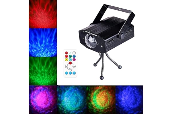 7 Colors Led Stage Party Light Projector, Strobe Water Ripples Lighting for Parties Room Show Birthday Party Wedding Dance Lighting with Remote Control(Black)