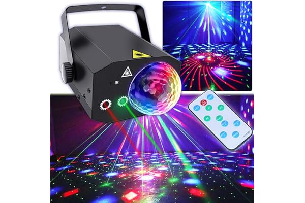 Disco Ball Lights,Dj Disco Lights,Rave Lights Stage Light Strobe Lights Laser Lights Sound Activated with Remote Control for Xmas Club Bar Parties Holiday Dance Christmas Birthday