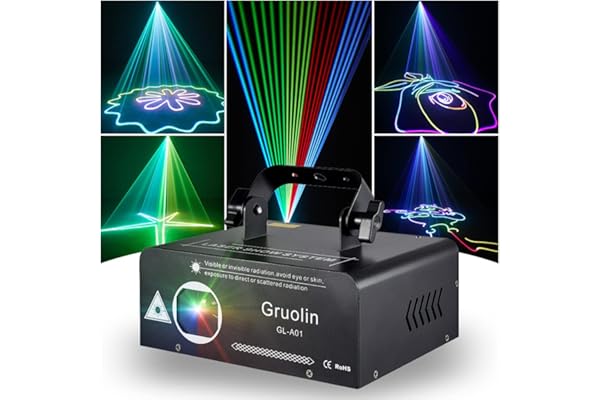 Gruolin 3D Animation DJ Party Laser Light Full Color with DMX512 & Sound Activated, Perefct for Disco Party Bar Club DJ & Stage Lighting
