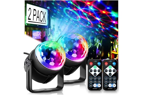 Disco Ball Disco Lights,Dj Rave Lights Led Strobe Lights Sound Activated Stage Lights Projected Effect Dancing Lights Remote Control for Birthday Xmas Wedding Bar Kids Christmas-1 Pack