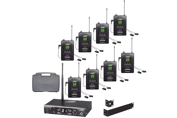 Audio2000'S AWM630CU UHF 100 Selectable Frequency Wireless in-Ear Monitor System with Eight Wireless Receivers and a PVC Carrying Case