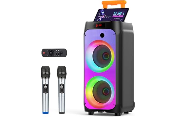 JYX Karaoke Machine with 2 UHF Wireless Microphones, Bluetooth Speaker with Bass/Treble Adjustment and LED Light, PA System Support TWS, AUX in, FM, REC, Supply for Party/Adults/Kids