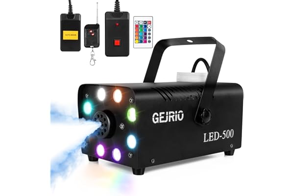 500W Smoke Machine with 16 Color Controllable Lights Effect, Automatic Fog Machine Outdoor with Wireless and Wired Remote Control for Halloween Parties & Stage (8 LED Lights)