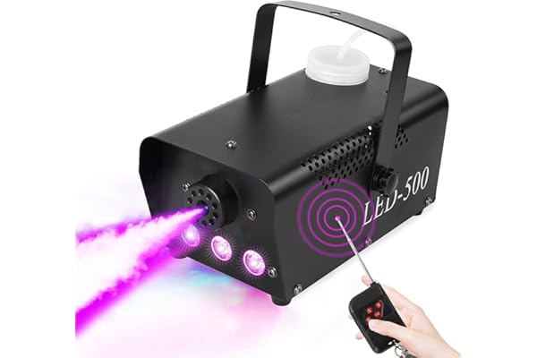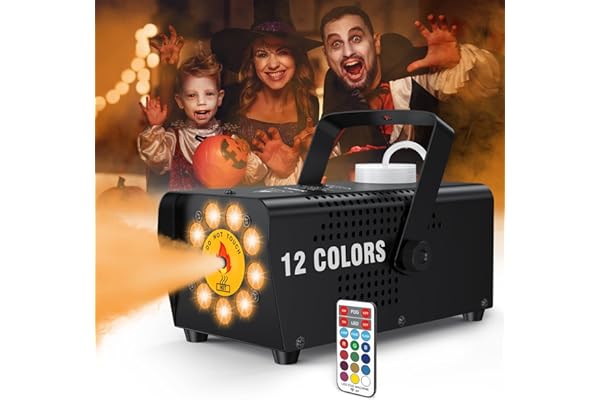 500W Smoke Machine for Halloween, Party, Wedding, Remote Control 12 Colors & Flash Mode, One Key to Get Continuous Fog, 2500CFM