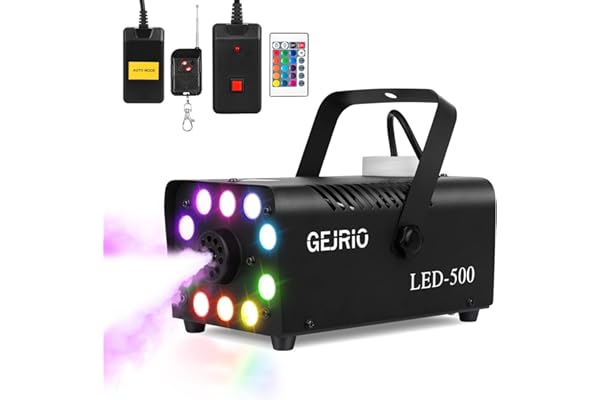 500W Smoke Machine with 16 Color Controllable Lights Effect, Automatic Fog Machine Outdoor with Wireless and Wired Remote Control for Halloween Parties & Stage (10 LED Lights)
