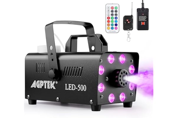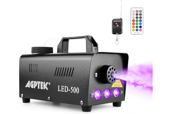 AGPTEK 500W Portable Led Smoke Machine with Lights (Red, Blue, Green) & Wireless Remote Control for Halloween, Christmas, Wedding, Parties, DJ Performance & Stage Show