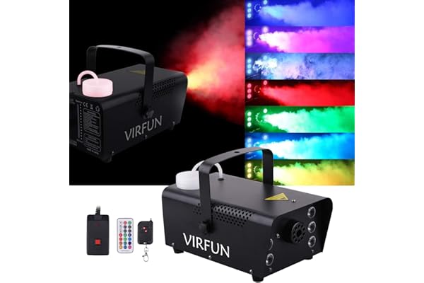 6 LED Lights with 12 Colors Effect, VIRFUN Smoke Machine with Wireless&Wired Remote Control for Parties Halloween Wedding and Stage Effect, 500ml Tank
