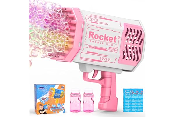 Big Rocket Boom Bubble Gun with 69 Hole and Light, 20 Bubble Liquid, Bubble Guns for Kids Adults Toddlers, Rocket Launcher Bubble Machine Gun for Parties Wedding Birthday
