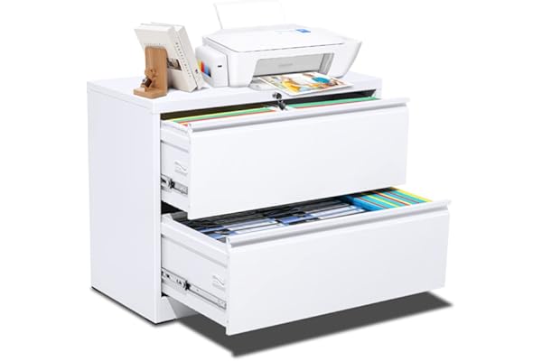 Lateral File Cabinet with Lock, Locking Metal Steel File Drawers Cabinet for Home Office, Horizontal File Cabinets for Legal/Letter/A4/F4 Size with Hanging Bars&Keys
