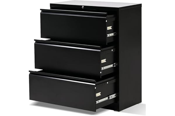 3 Drawer Lateral Filing Cabinet for Legal/Letter A4 Size, Locking Wide File Cabinet for Home Office, Metal Steel