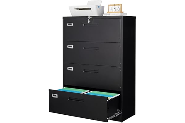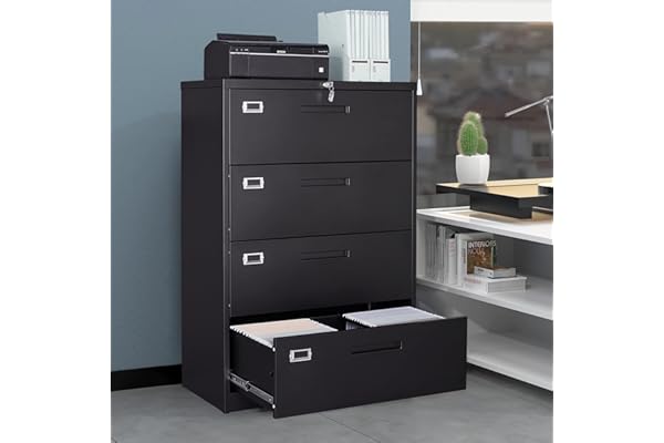 4 Drawer Steel Wide Filing Organization Storage Cabinets, Steel Lateral File Cabinet for Hanging Files Letter/Legal/F4/A4 Size,Assembly Required