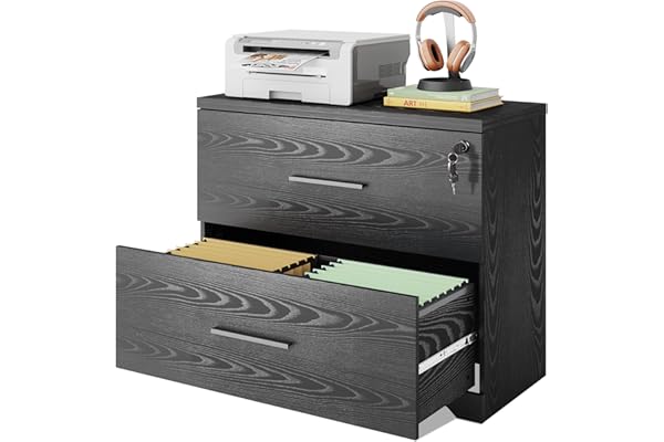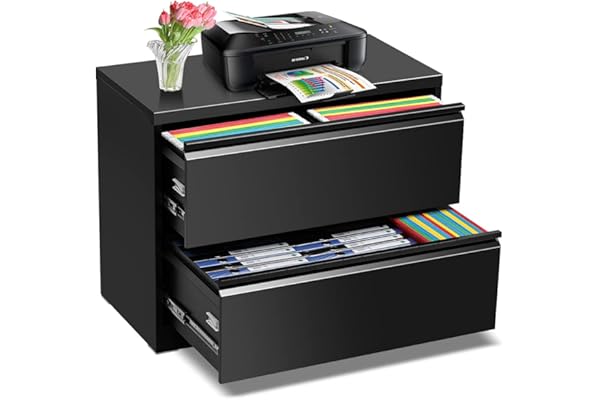 2 Drawer Steel Wide Filing Organization Storage Cabinets,Home Office Furniture for Hanging Files Letter/Legal/F4/A4 Size (Blcak-2 Drawer)
