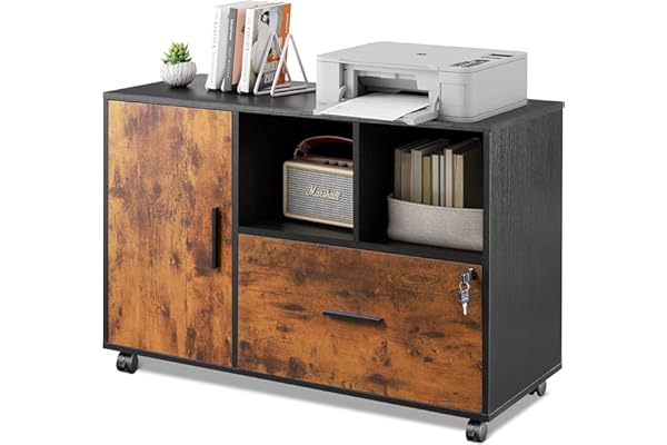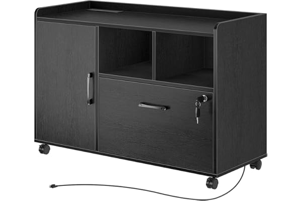 Mobile Lateral Filing Cabinet with Locking Drawers, Printer Stand with Open Storage Shelf with Wheels, for Letter/Legal / A4 Size Files, Black