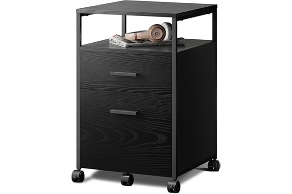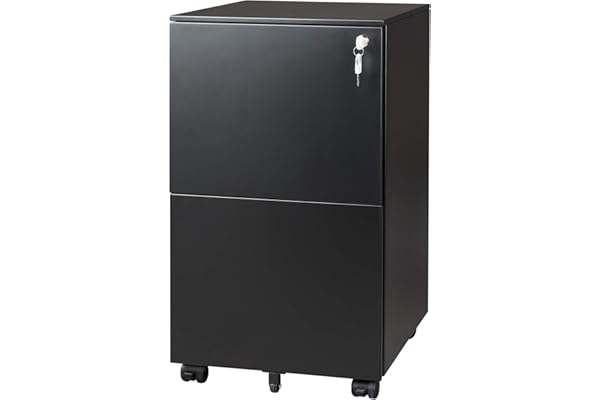 Mobile Filing Cabinet with Slim Width for Home Office, Black