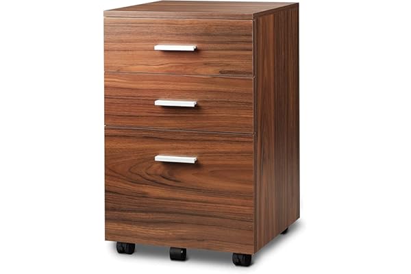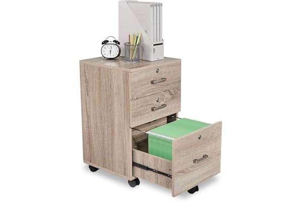 Bonnlo Upgraded 3-Drawer Rolling Wood File Cabinet with Lock