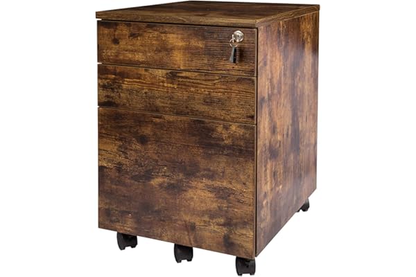 3-Drawer Filing Cabinet, Office Cabinet for Home Office, Mobile Pedestal on 5 Wheels, for A4, Letter Size, Hanging File Folders, Rustic Brown and Black BF02WJ01G1