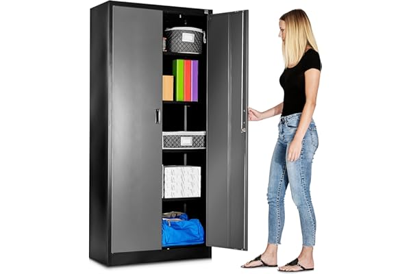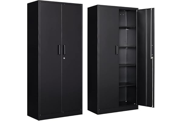 Yizosh Metal Garage Storage Cabinet with 2 Doors and 4 Adjustable Shelves