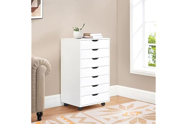 Naomi Home Debbie 7-Drawer Office Storage File Cabinet on Wheels, Mobile Under Desk Filing Drawer Unit, Craft Storage Organization for Home, Office