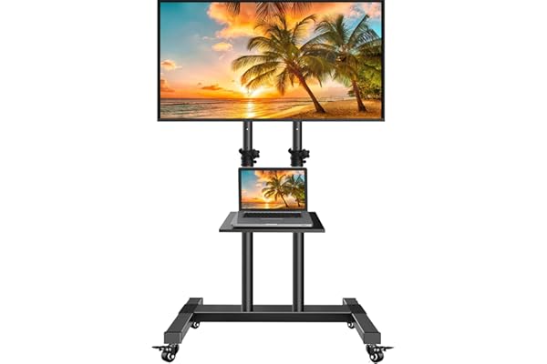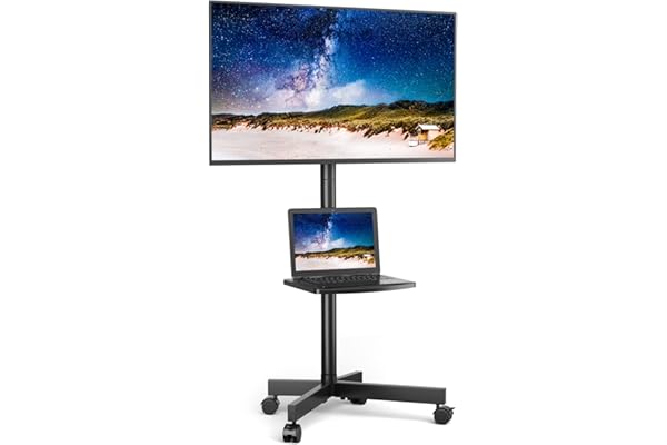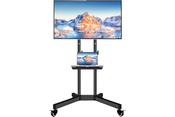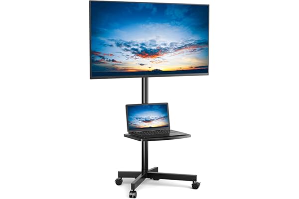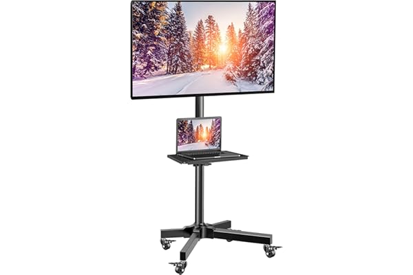 Height Adjustable TV Cart Rolling TV Stand with Laptop Shelf, Outdoor TV Stand - Max VESA 600x400, Black