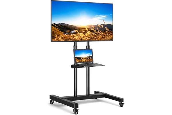 Rolling TV Stand with Wheels for 32-85Inch LED, LCD, OLED Flat&Curved TVs, Height Adjustable TV Cart with Laptop Shelf and Locking Wheels, Holds Up to 132lbs Max VESA 600x400mm, Black