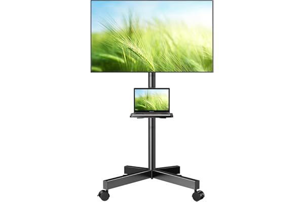 Tilt TV Cart Max VESA 400x400 Portable TV Stand with Laptop Shelf Rolling Floor TV Stand Holds up to 88Lbs (PSTVMC06)