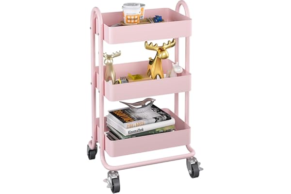 Heavy Duty Multifunction Cart with Lockable Casters, Easy to Assemble, Suitable for Office, Bathroom, Kitchen, Garden (Pink)