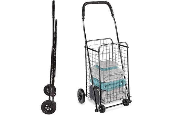 Grocery Cart, Laundry Cart and Stair Climber Cart, Weighs 7.5 Pounds but holds up to 90 Pounds, Compact and Foldable, Black