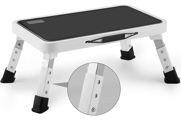Height-Adjustable Step Stool with 15" X 10.2" Non-Slip Platform, One Step Ladder with a Portable Handle for Adults or Kids in Office, Kitchen, Home, 330 Lbs Capacity
