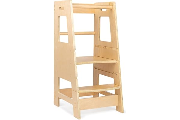 Wood Step Stools for Kids, Toddler Step Stool for Kitchen Counter, The Original Kitchen Stepping Stool, Adjustable Platform, Natural Wood