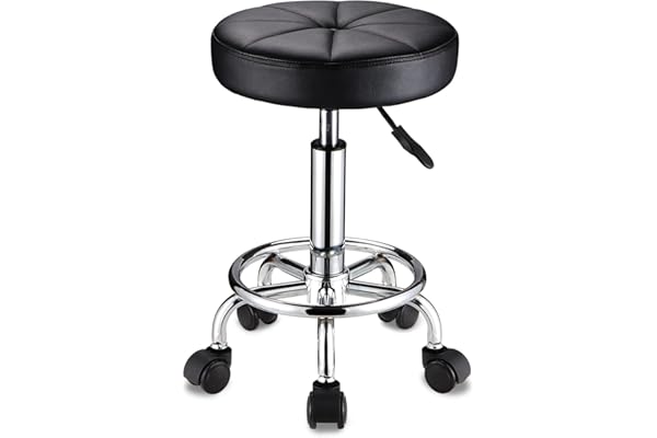 HMTOT Swivel Stool with Wheels Round Rolling Stools PU Leather Height Adjustable Black