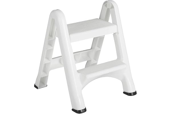 Bee Neat 2 Step Small Folding Stool Ladder for Office, Garage, Library, Closet, Bathroom, Porch, & More